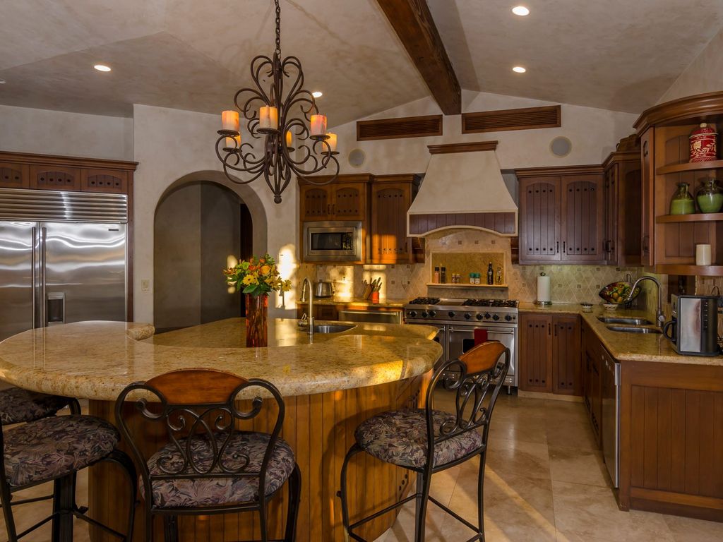 House of Dreams', is located within the exclusive and private Country Club Community of Querencia. Convenient to the Airport, Beaches, Attractions and Activities of San Jose del Cabo, as well as the hustle bustle of Cabo San Lucas. . Hacienda style Estate, set on a half-acre lot, overlooking the Sea of Cortez, Palmilla Bay, and beautiful Punta Gorda .Enter through electronic gates to the expansive stone motor court, complete with fountain, and spectacular landscaping! Your Private Resort features single level living, 6 guest suites, complete with luxury baths, walk in closets, and spectacular views.! Residence is complete with 6 bedrooms, 6 full, and 1 half bath...Gourmet Chefs Kitchen, Media Room with surround sound and 60’, HD Television. Comfortable leather seating and views to the pool and ocean. Living Room is Decorator Furnished, complete with Vaulted and Beam Ceiling, Full stone wall Fireplace, Wet Bar area, and full height French doors that lead to pool n patio areas. Dining Room with hand wrought iron chandelier, seats 12, and enjoys wonderful pool and Ocean Views. Gourmet Chef's Kitchen features Viking and Sub Zero Appliances. Two Tier Island with bar seating, and separate Dining area for 6.