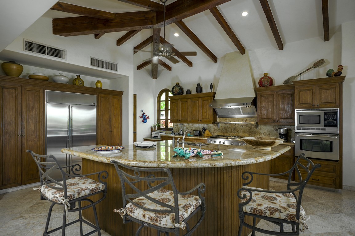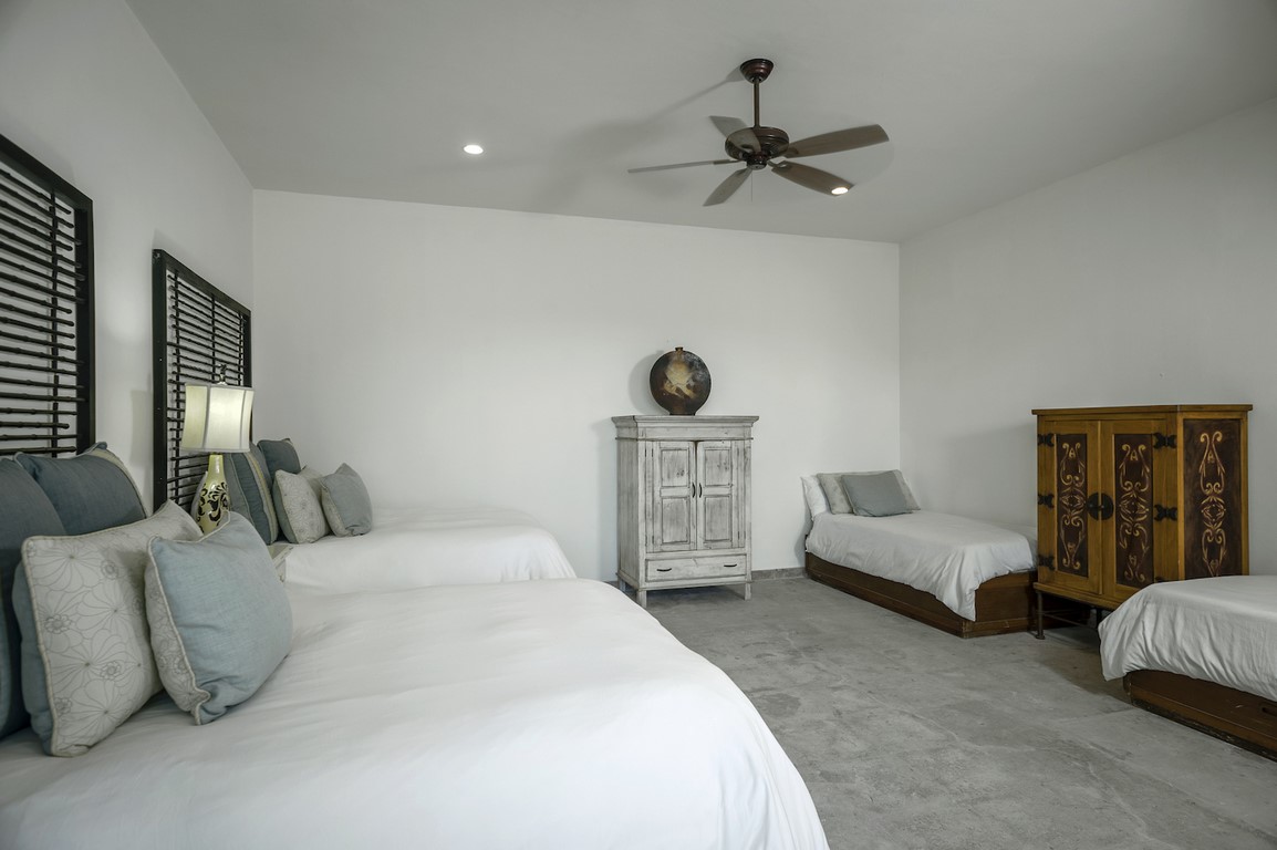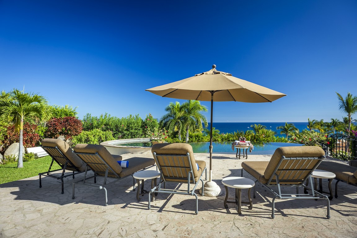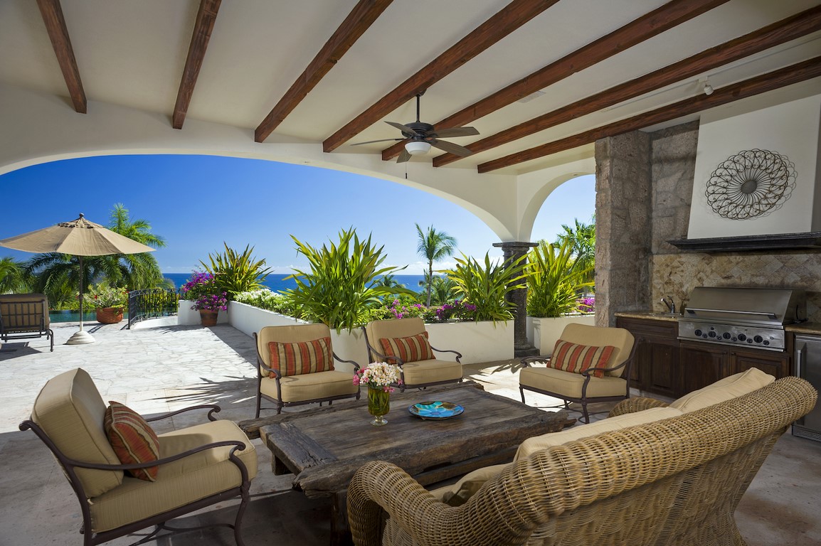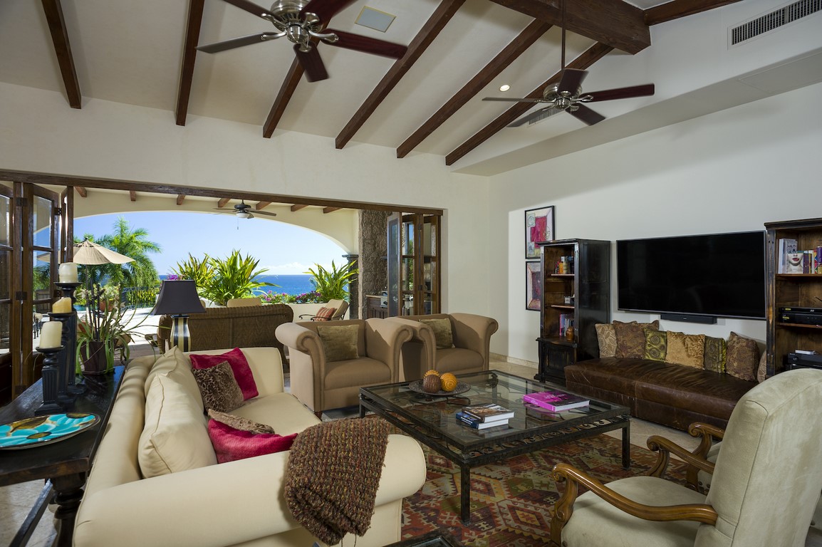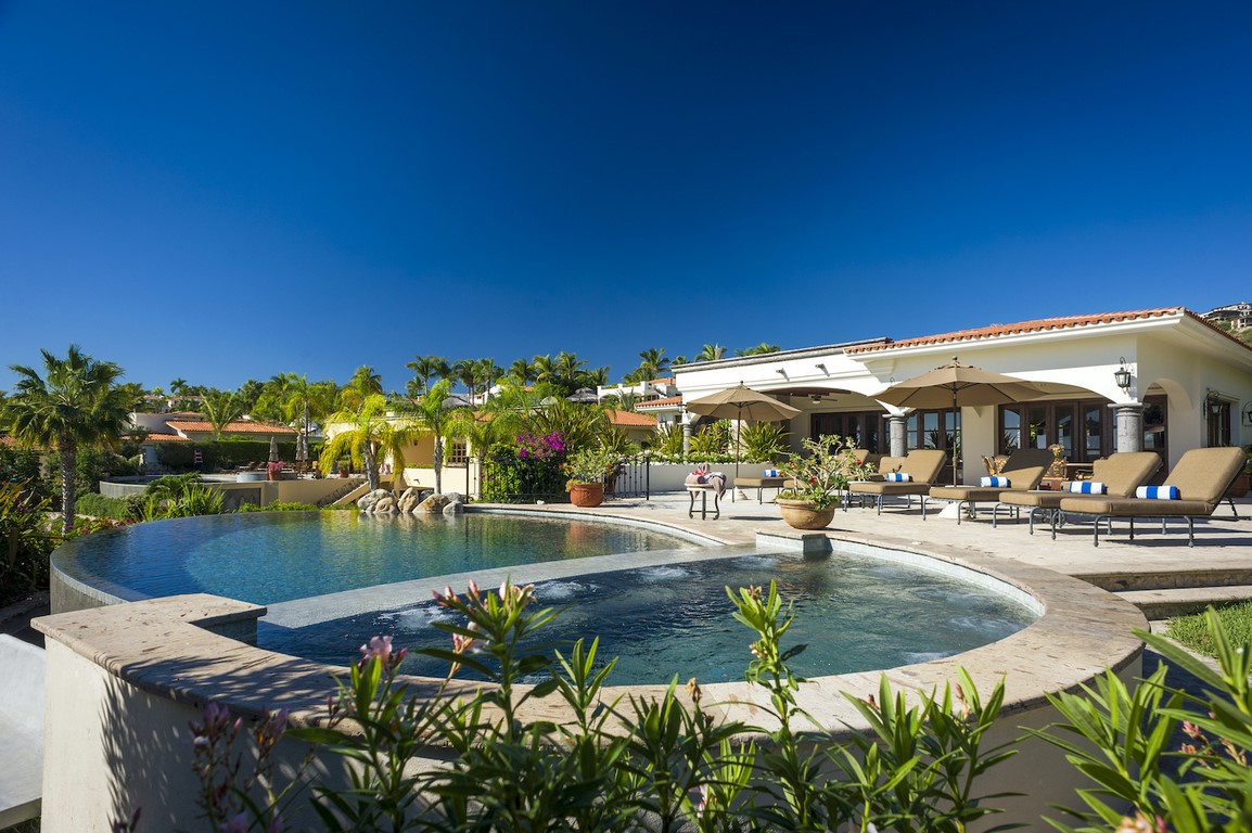 Casa Maravilla is spacious 5 bedroom home in Palmilla Caleta that is outstanding value. Palmilla Caleta has long been the most desirable area in Los Cabos. The whole area is very safe with two security gates maintaining our guest’s safety and privacy. The house is one row back from the beach with views out over the ocean toward the One & Only resort hotel on the point of Palmilla. To make the most of the views all the upper level has French doors that fold back to allow you to enjoy both the view and the soft warm breeze. Comfortably furnished both inside and out there are options for where you want to eat, either inside or out and plenty of seats to accommodate everyone. Outside as well as plenty of over-sized sun beds and chairs there is a dining table, wine and beer fridge and gas grill. The large sun deck culminates with the infinity edged pool and large hot tub, which has room for at least 12 adults. The pool overflows down a wall to the lower level and provides a water feature for the lower level where there are three more private bedrooms.