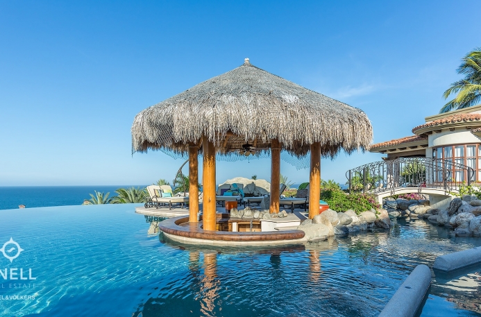 Amenities include a deluxe fitness center, suite style bedrooms, largest private pool in Cabo which includes a jacuzzi and a swim up bar, entertainment room with bar and pool table, wine room, basketball court, terrace, BBQ area, pergola, private pool suite, and more!