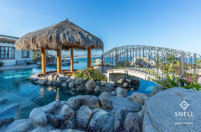 Experience the welcoming embrace of Casa Tranquilidad in Palmilla. And ¨embrace¨ is exactly what this owner-designed smart- home does as it wraps itself around you creating ample privacy on the largest lot in the community. This tranquil Hacienda- styled mansion will make you (and everyone else) feel at home. Infused with rustic beauty, this 11,561 square foot showpiece is expertly balanced with an unflinching attention to detail and craftsmanship which is found in the eight bedroom suites and beyond. From the 2000 bottle wine room to the commanding presence of it s great room, This home was designed with entertaining, connecting and blending the indoors with the outdoors in mind. This blending extends to the pool area as well so whether you re floating along the lazy river, relaxing at the islands swim-up palapa bar or simply escaping into a waterfall shrouded grotto, you ll see why Cabo s largest private heated pool is as thoughtful as it is beautiful.