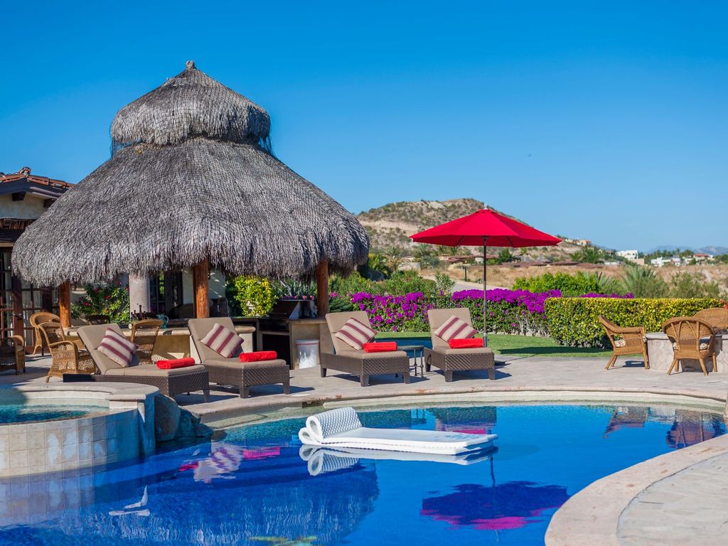 House of Dreams', is located within the exclusive and private Country Club Community of Querencia. Convenient to the Airport, Beaches, Attractions and Activities of San Jose del Cabo, as well as the hustle bustle of Cabo San Lucas. . Hacienda style Estate, set on a half-acre lot, overlooking the Sea of Cortez, Palmilla Bay, and beautiful Punta Gorda .Enter through electronic gates to the expansive stone motor court, complete with fountain, and spectacular landscaping! Your Private Resort features single level living, 6 guest suites, complete with luxury baths, walk in closets, and spectacular views.! Residence is complete with 6 bedrooms, 6 full, and 1 half bath...Gourmet Chefs Kitchen, Media Room with surround sound and 60’, HD Television. Comfortable leather seating and views to the pool and ocean. Living Room is Decorator Furnished, complete with Vaulted and Beam Ceiling, Full stone wall Fireplace, Wet Bar area, and full height French doors that lead to pool n patio areas. Dining Room with hand wrought iron chandelier, seats 12, and enjoys wonderful pool and Ocean Views. Gourmet Chef's Kitchen features Viking and Sub Zero Appliances. Two Tier Island with bar seating, and separate Dining area for 6.